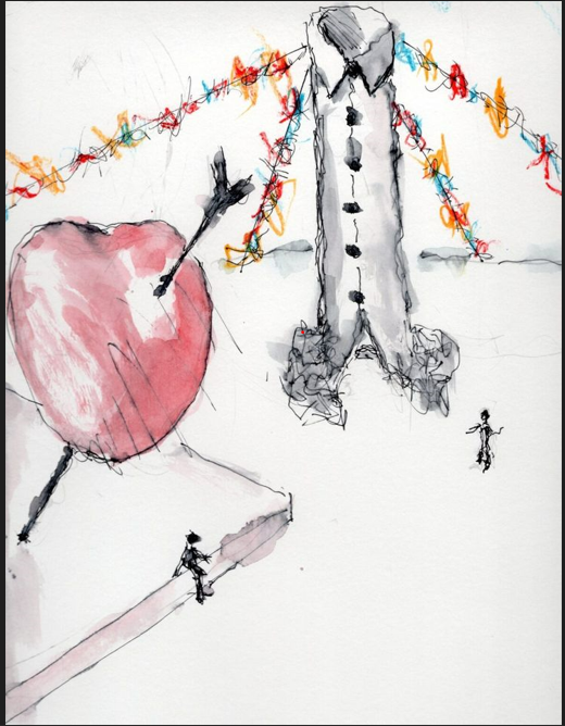 Dallo schizzo si può supporre che ci sia stato qualche errore nella realizzazione che è avvenuta senza la supervisione dell’ autore scomparso ad aprile, resta il fatto che anche lo schizzo si allontana dalla maschera. Pulcinella indossa una camiciola informe con lacci, emblema della sua povertà e del suo legame con il popolo. L’utilizzo di una giacca o una camicia con bottoni lo snatura e lo allontana non lo reinterpreta. La discussa scultura dialogherà con un cuore trafitto alto 5 metri posto di fronte. Probabilmente questo dialogo funzionerà ma quello con la città resta un’ incognita.